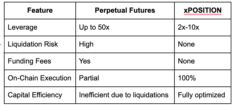 By eliminating liquidation risks and funding fees, xPOSITION provides a more trader-friendly leverage system that ensures positions remain open even during market downturns.