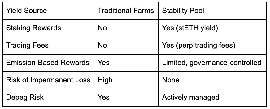 The Stability Pool creates a positive-sum ecosystem where yield farming actively benefits leverage traders and stablecoin users.