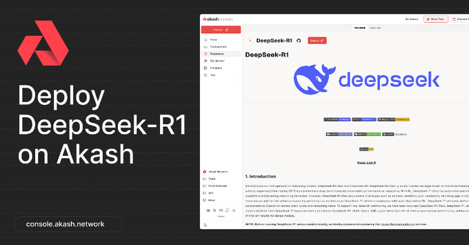 Akash Network announced support for deploying DeepSeek-R1 on its Supercloud, offering users full privacy, self-custody, and dedicated access.