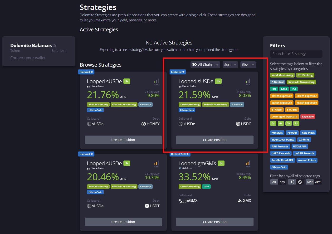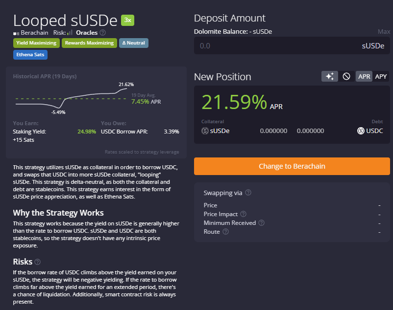In this example we will select 3x Looped sUSDe with USDC as the funding currency