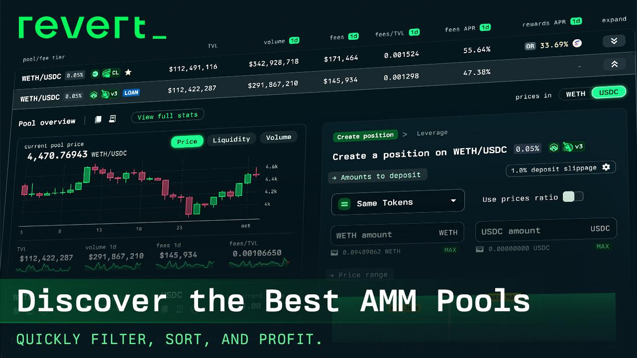 Revert’s Discover Pools lets you filter, compare, and uncover hidden yield opportunities across every major AMM — all in real time.