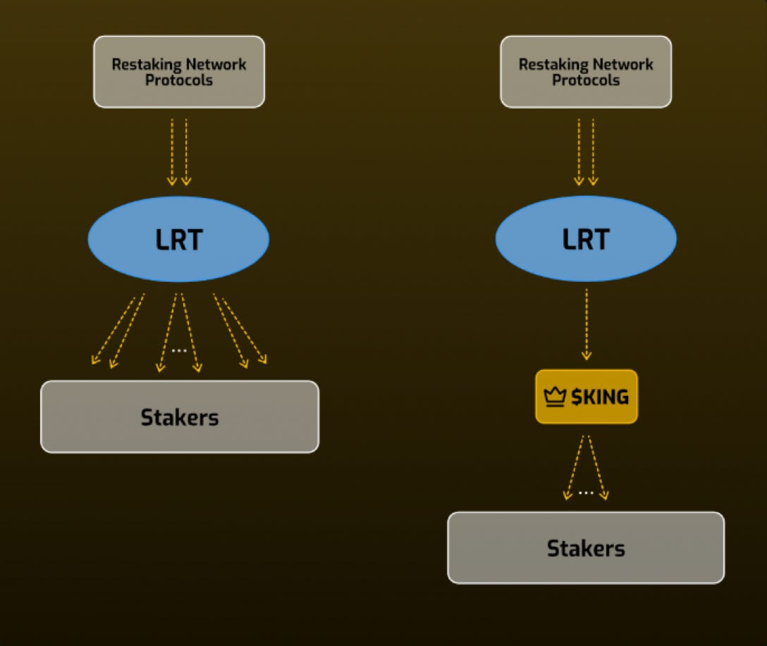 $KING – A unified restaking rewards protocol acting as a vault that holds the rewards tokens as underlying assets.