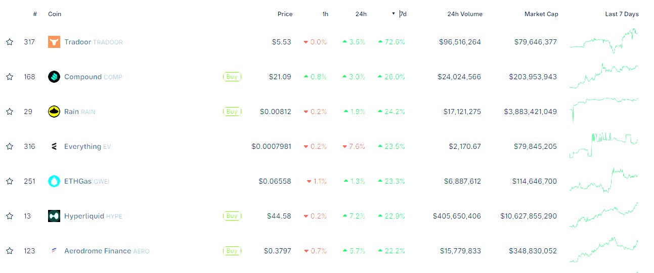 HYPE/Hyperliquid (+22.9% weekly) Consolidating after its ATH run, but the catalysts keep stacking.
