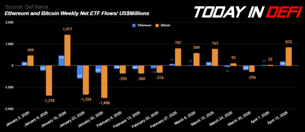 This week recorded the highest Bitcoin and Ethereum ETF inflows after Morgan Stanley launches their Bitcoin ETF last week, +$833M. Major inflows are still sourced from BlackRock’s Bitcoin ETF. Institutional floor stayed intact: ETF inflows, corporate buying.