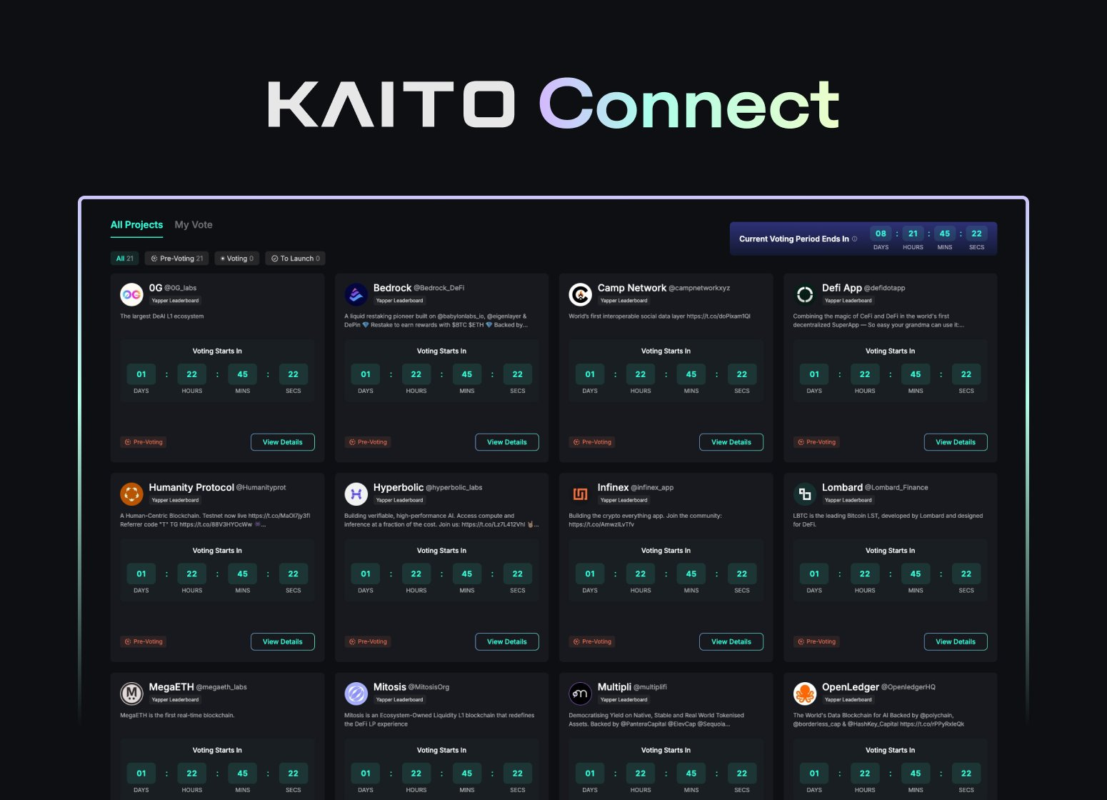 Kaito AI has launched the Yapper Leaderboard Launchpad, focusing on pre-TGE projects to address information asymmetry and foster market consensus. Starting with 21 projects, three are selected weekly for voting, with the highest-voted project moving to the "To Launch" section and their leaderboard debuting seven days later.