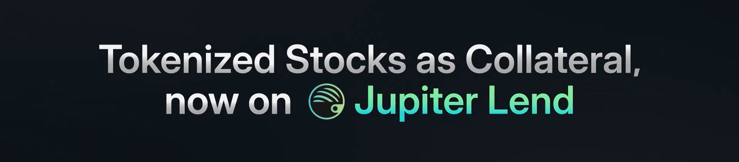Jupiter launched xStocks collateral on Jupiter Lend with SPYx, QQQx, NVDAx, and TSLAx, enabling up to 75% LTV borrowing and ~3.8x leverage while earning xPoints on positions.