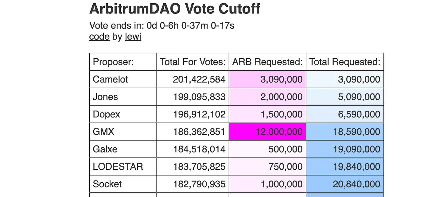 Arbitrum Short-Term Incentive Program (STIP) votes end with a cutoff on grantee projects. As a result 29 out of 97 applicants with the highest total votes will be granted.Proposal: Lido SimpleDVT