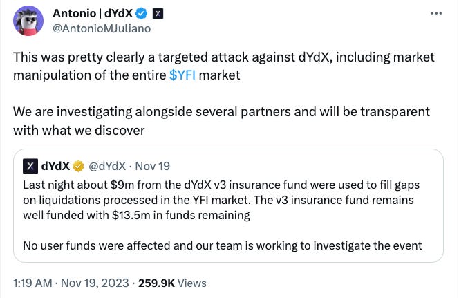 dYdX v3 insurance fund lost $9 million, representing around 40% of its total, following liquidations in the Yearn Finance (YFI) market.Woo X Pauses Trading