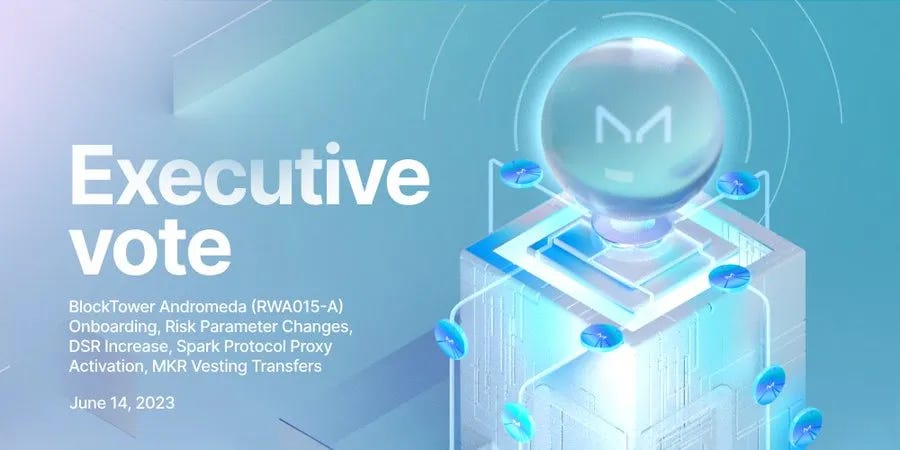 MakerDAO is passed the executive vote and will implement key changes to the protocol, including the Dai Savings Rate (DSR) increase to 3.94%.Passed: Reduce Fantom Validator Staking Requirement