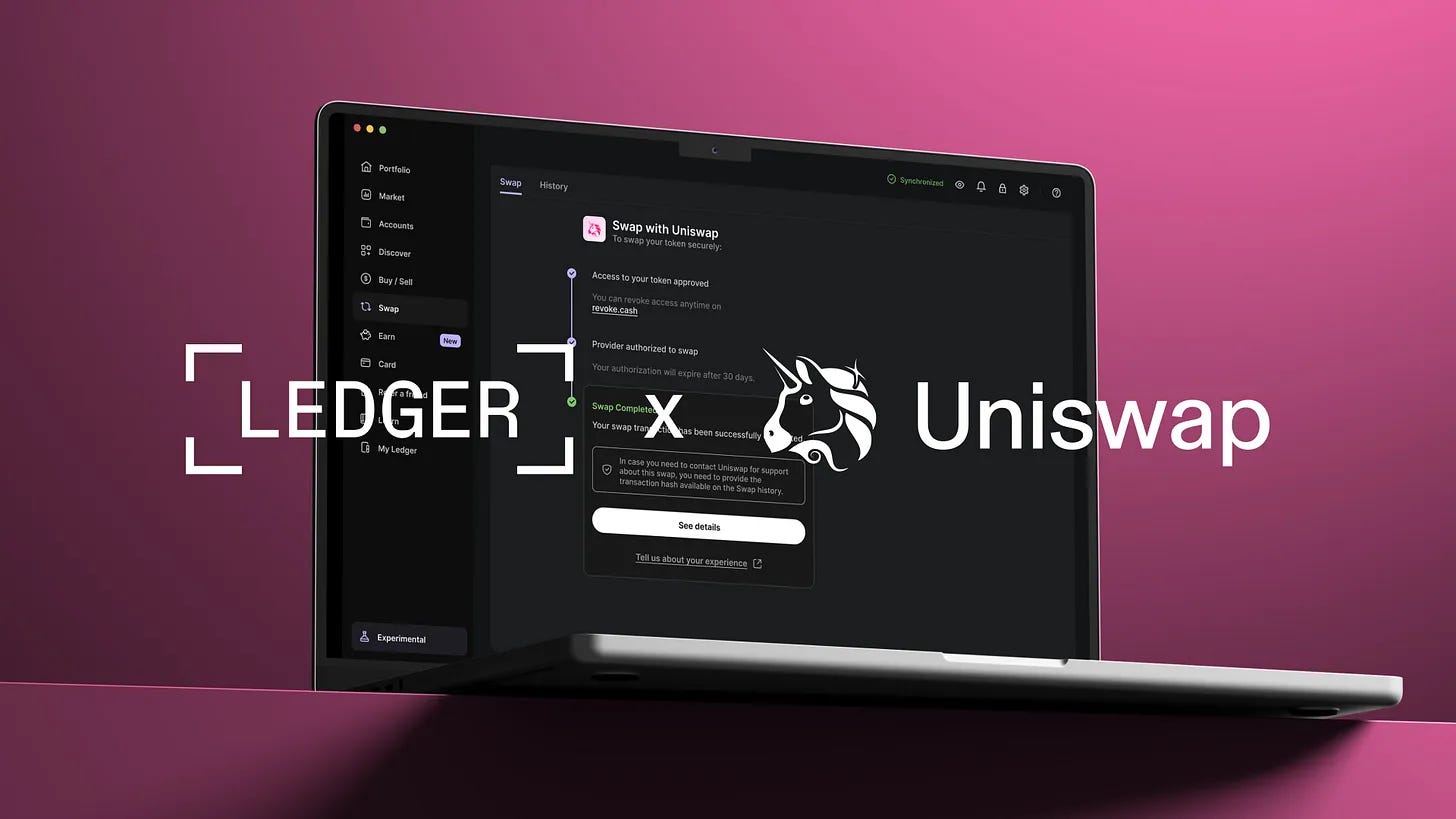 Ledger integrates Uniswap into Ledger Live Desktop, allowing users to trade Ethereum tokens directly while maintaining Ledger's security. Uniswap’s DeFi capabilities join forces with Ledger, with more networks to be added soon. Explore now via Ledger Live.