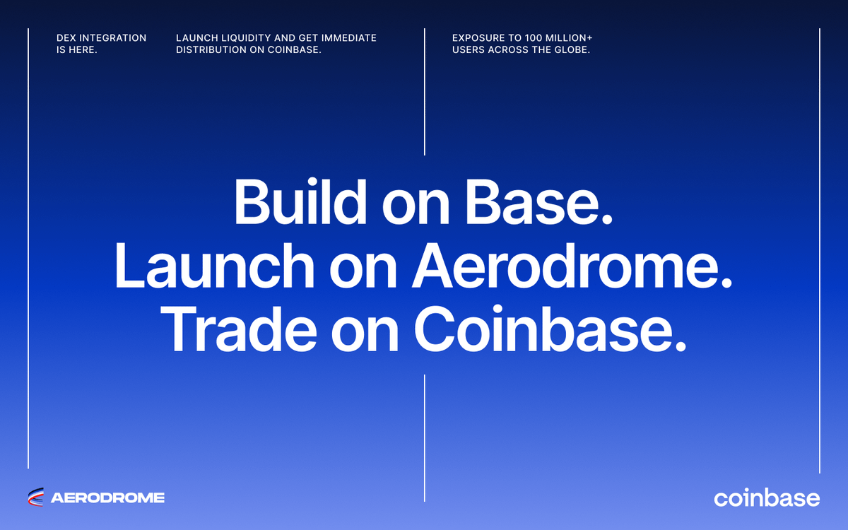 Aerodrome has integrated with Coinbase, allowing all assets, pools, and launches on Base to be accessible through the Coinbase platform. The integration provides direct distribution for protocols launching liquidity on Base via Aerodrome.