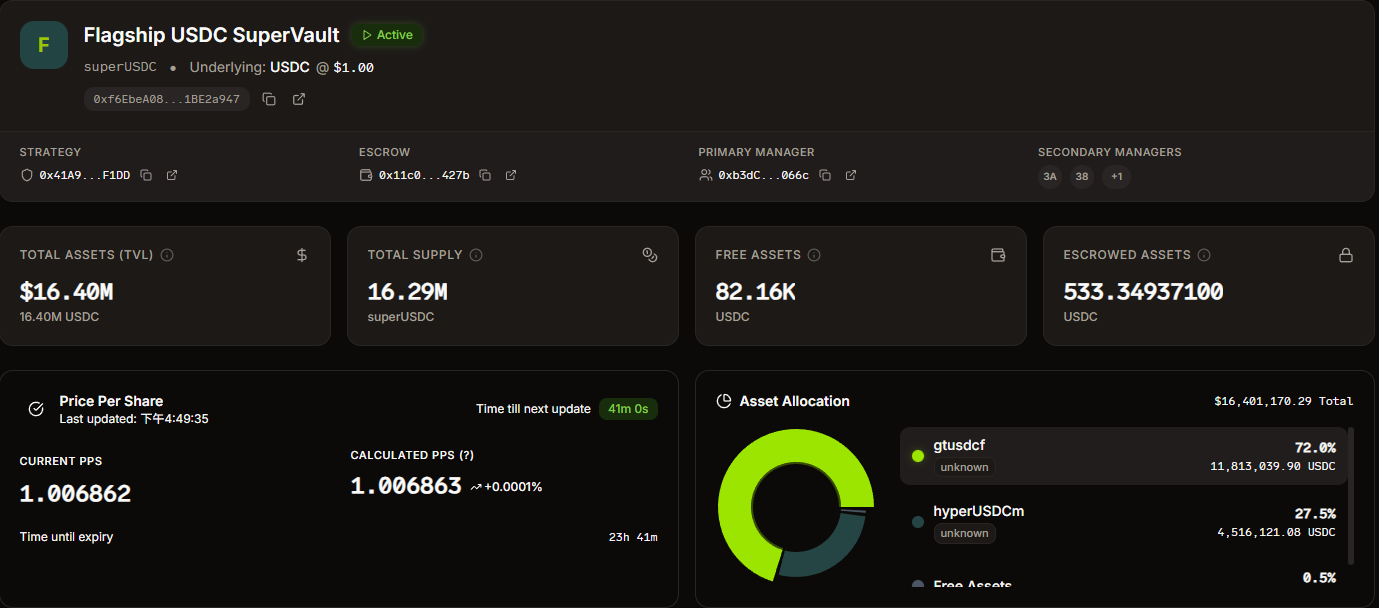 The Flagship USDC SuperVault is the flagship product from Superform’s V2 launch. It aims to solve a common DeFi headache: choosing between flexible, low-yield lending pools and high-yield, locked investments. By automating this choice, it offers a balanced approach to earning on stablecoins.