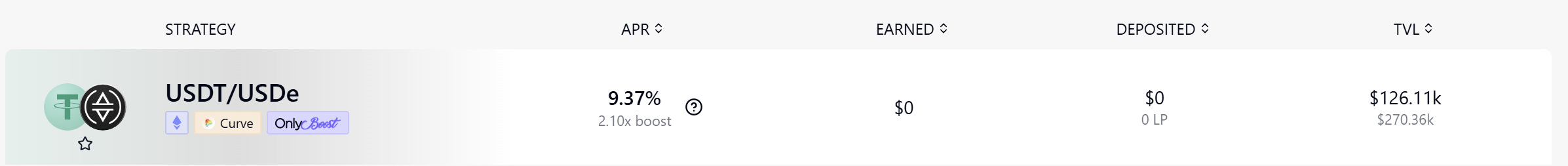 What it is: Stable pool pairing Tether’s USDT with Ethena’s USDe.