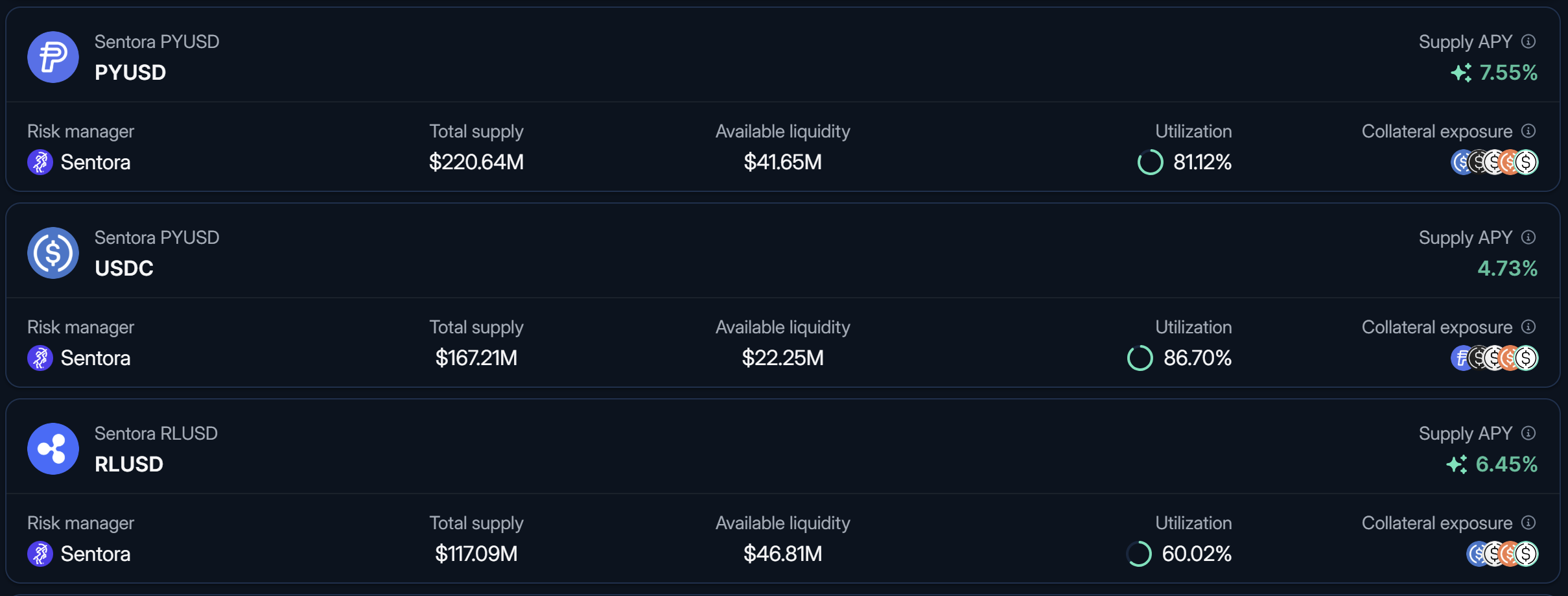 What is it: Sentora-curated Euler vaults with tight collateral exposure (Maple + Ethena). Lenders earn yield from interest paid by borrowers, who deposit collateral assets into Euler’s credit markets.