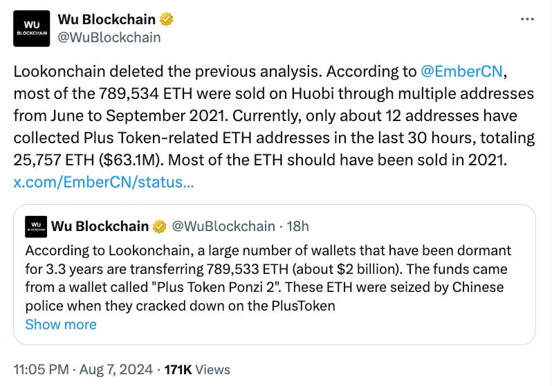 Reported by Lookonchain and Coindesk, a ~$2B (2,800 ETH) worth of ETH is being moved on-chain, raising concerns about potential market pressure.