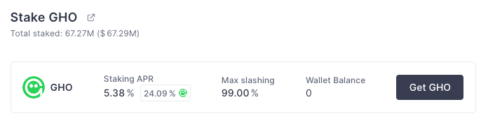 Stake your GHO to earn ~29.47% APR from AAVE and Merit Program