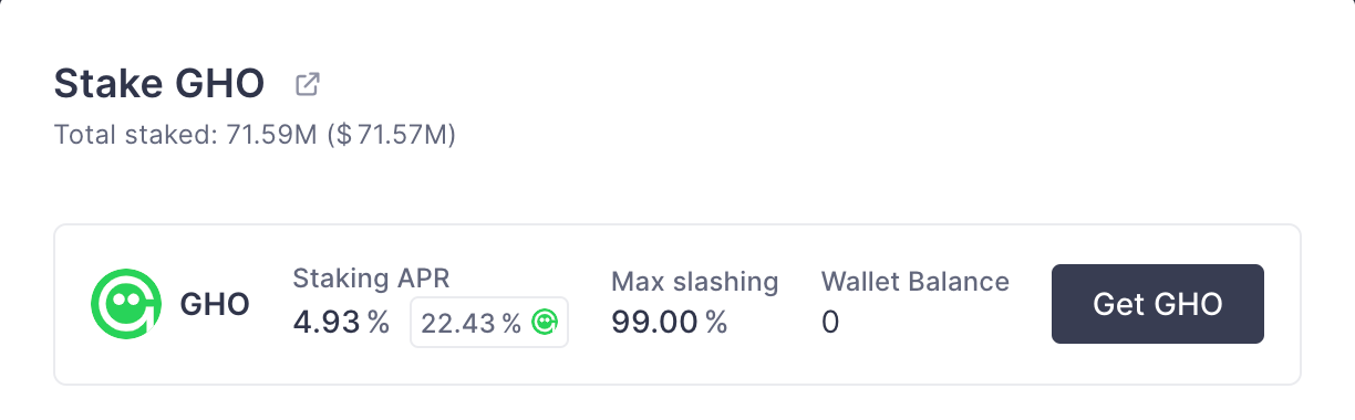Stake your GHO to earn ~26.73% APR from AAVE and Merit Program