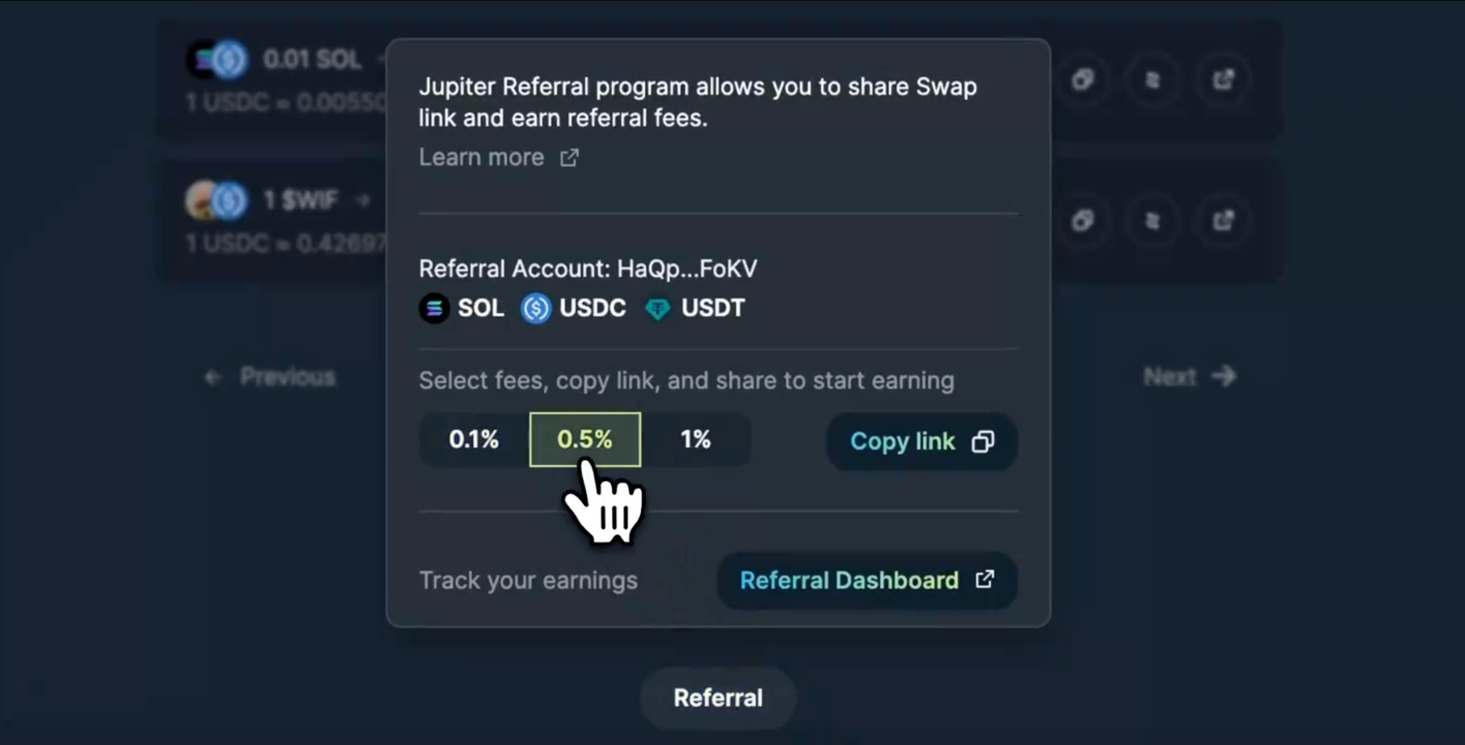 Jupiter has introduced a new Referral Program. Users can invite friends to swap on Jupiter and earn referral fees.