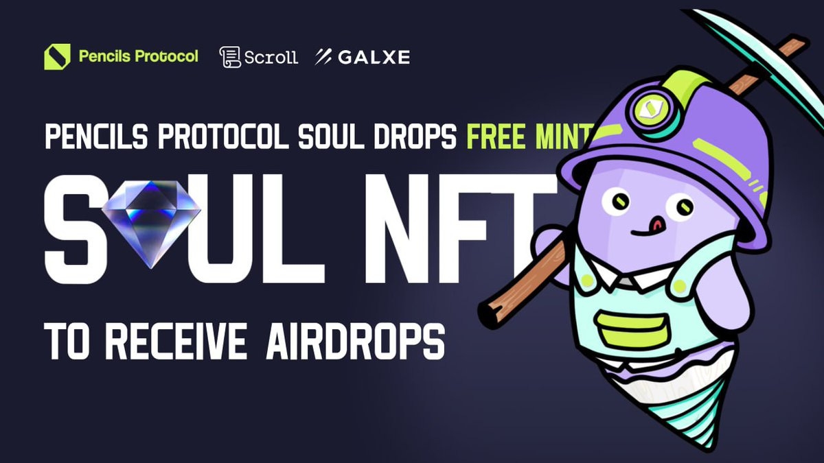 Pencils Protocol, an auction platform and yield aggregator on Scroll, launches the NFT Soul Drops. Users can participate by completing quests to earn points.
