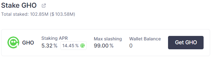Stake your GHO to earn ~20% APR from AAVE and Merit Program