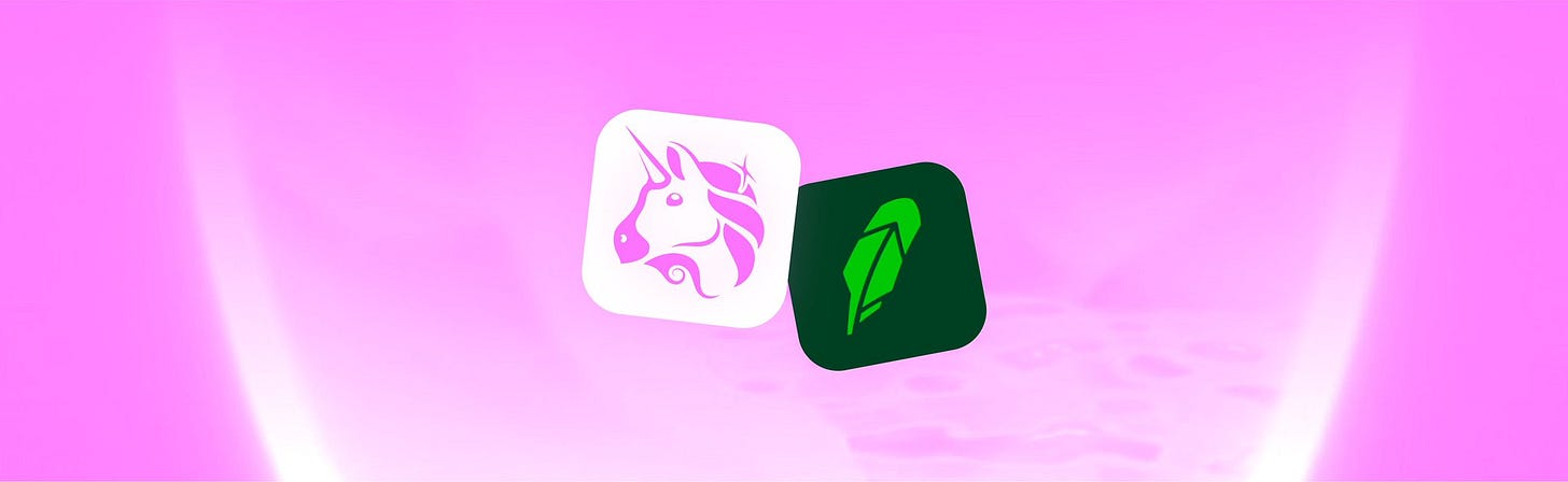 Uniswap Wallet integrates with Robinhood Connect. Uniswap mobile app users can now buy crypto with a debit card, via bank transfer, or directly from their Robinhood balance using Robinhood Connect.