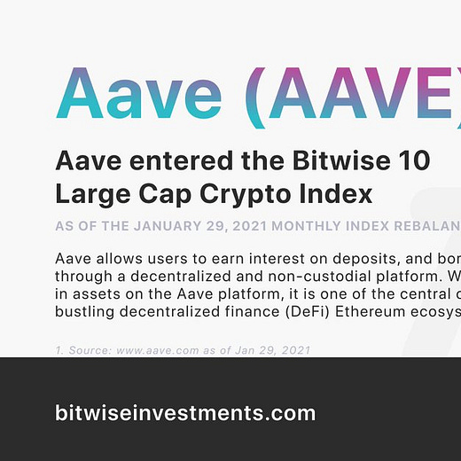 Bitwise, a crypto index fund provider, has added UNI and AAVE to its crypto top 10 index fund. See the fund here.