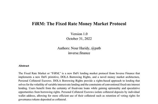 Inverse revealed FiRM and $DBR, a new mechanism of Fixed Rate Borrowing. $DBR is a tokenized form of interest rate, users can buy $DBR during a low-interest rate environment either to bet on or hedge against higher interest rates in the future or secure their cheap access to loans when needed.