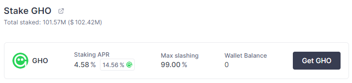 Stake your GHO to earn ~19% APR from AAVE and Merit Program