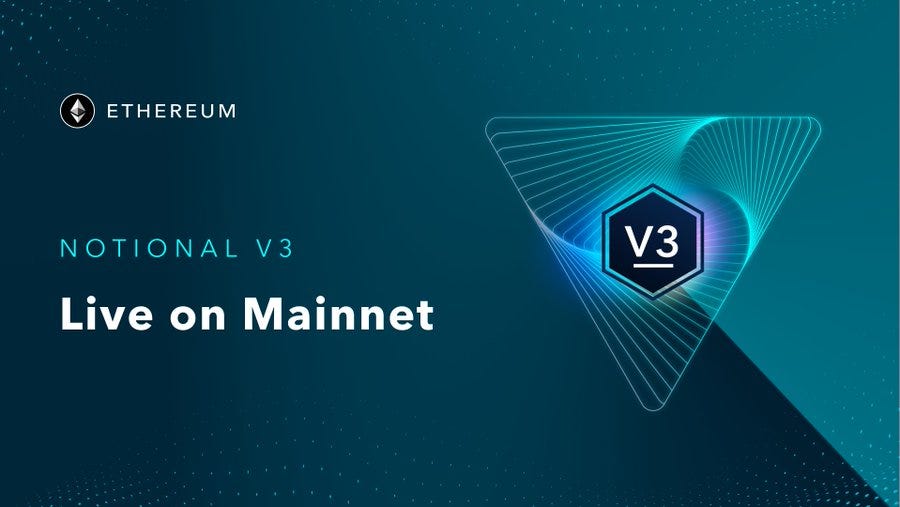 Notional V3 is live on Ethereum Mainnet. Users can provide liquidity to ETH, USDC, USDT, and rETH to earn yield + NOTE incentives or use these assets as collateral.