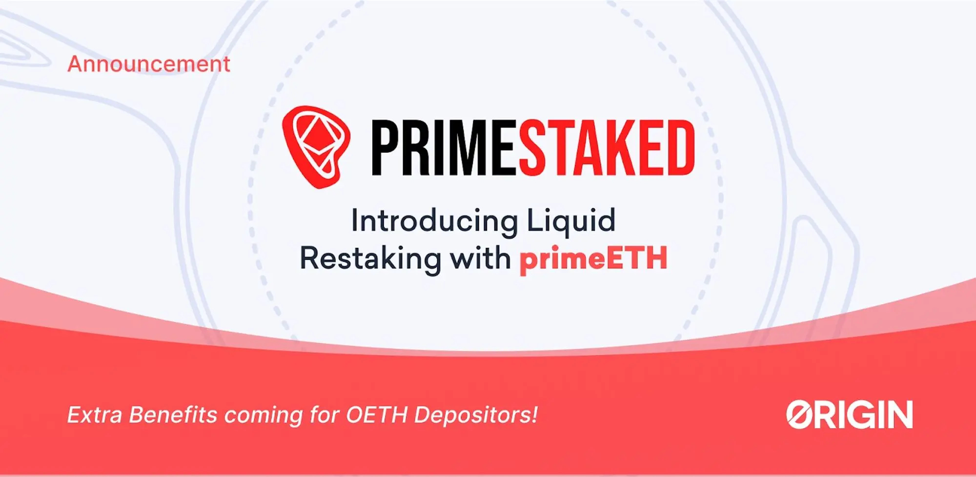Origin Protocol launched Prime Staked ETH ($primeETH). Users can now restake ETH and earn LST yield, EigenLayer Points, and Experience Points. OETH deposits will receive an additional 2x bonus on their XP.
