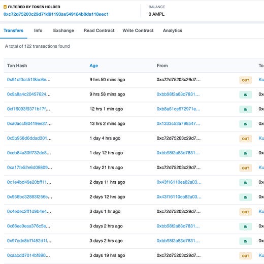 After weeks of positive growth in price and supply, Ampleforth finally dumps significantly below $1. This caused it to experience its first negative rebase in a month.