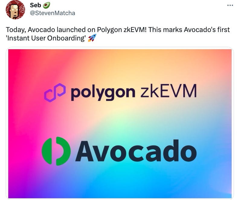 Avocado Wallet now supports Polygon zkEVM. Built by Instadapp, Avocado is a smart contract wallet that allows unified cross-chain execution.