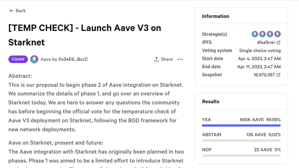 Aave governance passed the temperature check to deploy V3 on StarkNet.
