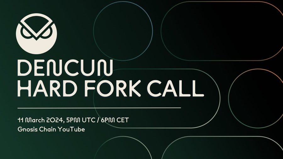 Gnosis Chain Dencun hard fork will go live on 11 March 2024 at 18:30:20 UTC. The upgrade enables blobs (EIP - 4844 Proto-Danksharding), enabling L2 chains to scale and providing a cheaper data layer.