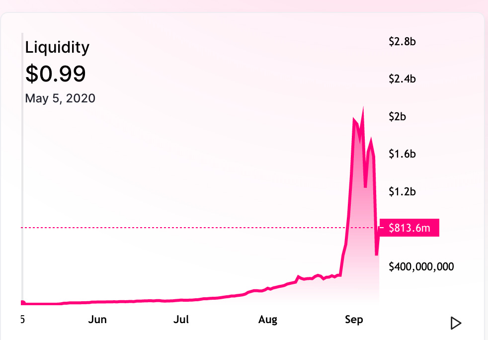 One surprising fact. While Sushiswap was inspired by a “vampire attack” article, in fact it did not end up reducing Uniswap’s liquidity. It seems that Uniswap’s liquidity is actually greater after the migration than before.