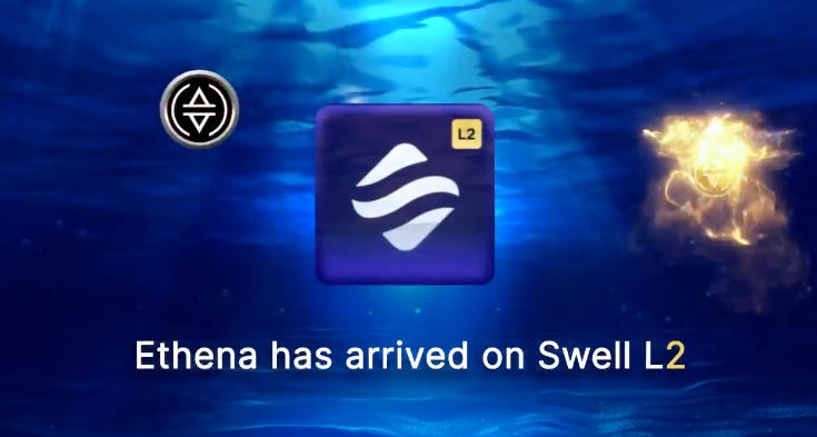 Swell L2 now supports Ethena USDe. Users can deposit USDe in the Pre-Launch to earn Sats, Swell season 2 airdrop, airdrops from projects on Swell L2, and a share of 1M EigenLayer points.