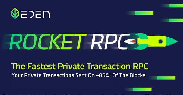 Priority transaction protocol Eden launched Rocket RPC beta, providing faster private tx for users than Eden RPC users with some tradeoffs (weaker guarantees for tx execution, MEV protection, and transaction priority).