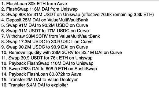 Value DeFi was hacked yesterday for $7M, with $2M of that returned, in a pattern reminiscent of several flash loan attacks. Similar to the recent Harest attack, this one seemed once again an oracle manipulation issue, where the price on Curve was manipulated, leading to a mispricing on the project (value defi) relying on it.