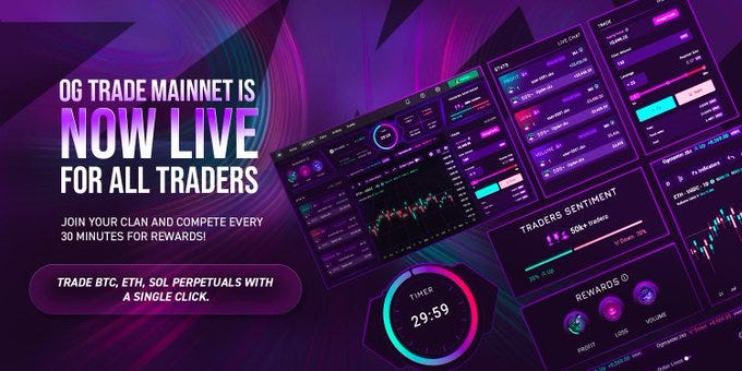 Gamified perp DEX ZKX launches on Starknet Mainnet with OG Trade live. Within OG Trade, traders get to compete in the 30-minute competition for rewards based on Profit, Volume, and Loss.