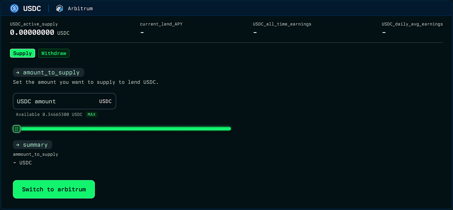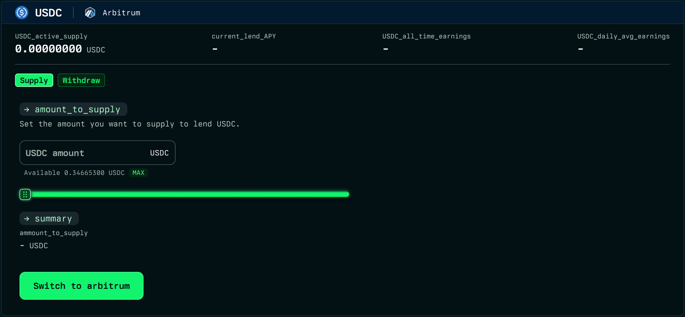 Click "Supply USDC" to the pool, which follows the ERC-4626 Tokenized Vault Standard.
