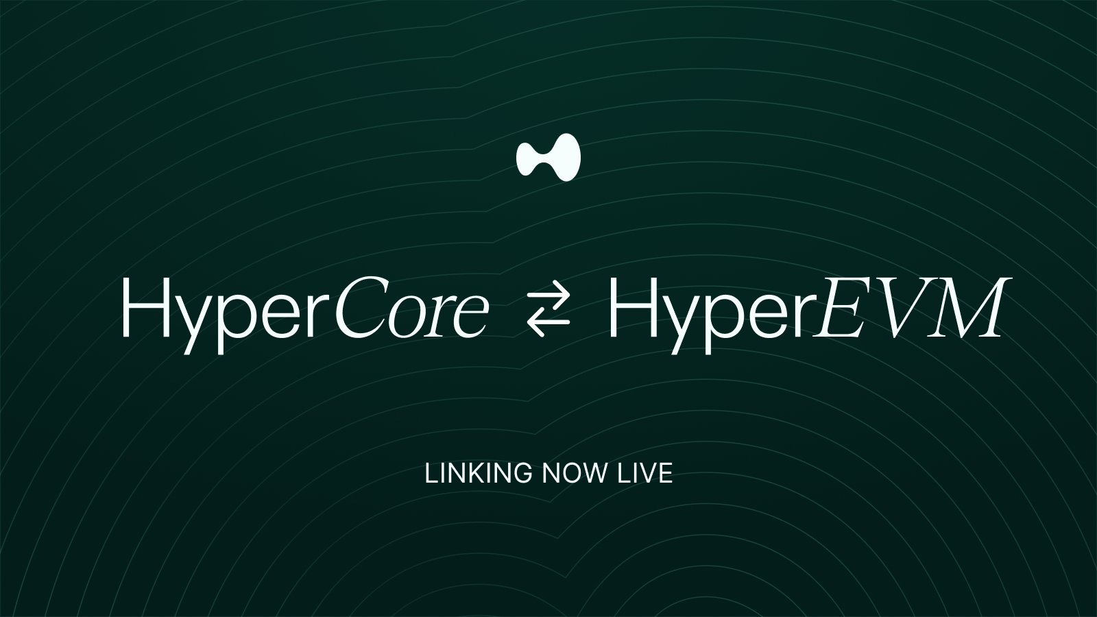 Hyperliquid launched mainnet linking between HyperCore and HyperEVM, enabling spot assets from HyperCore to be used natively in HyperEVM applications. Developers can now list tokens directly on HyperCore's high-volume order books, unlocking seamless composability across DeFi functions—building, launching, and trading—all onchain.
