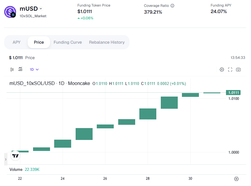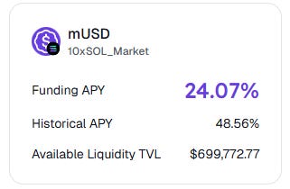 Funding Token Price: unlike a rigid stablecoin (USDC), mUSD is an accumulation token. The funding fees paid by traders are likely added to the pool, causing the price of mUSD to slowly appreciate over time (rising above $1.00) rather than paying out a separate cash dividend.