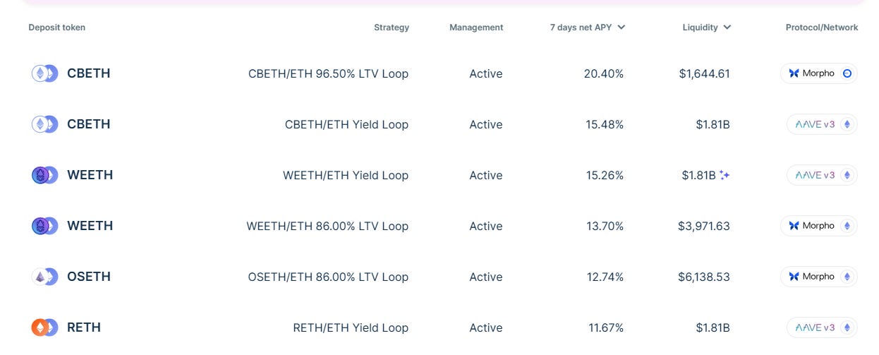 As you scroll through the leverage level, you may notice that some strategies may be greyed out - that means that either the borrow cap is already filled or the LTV(Loan to Value) level doesn’t support that amount of leverage.