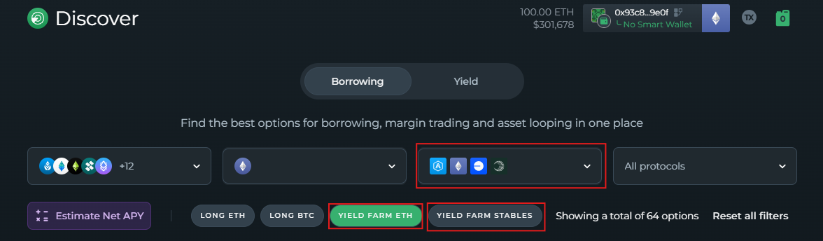 Choose between farming ETH or stables, and even the chains you prefer to farm on, DeFi Saver will filter all the available farms for you.